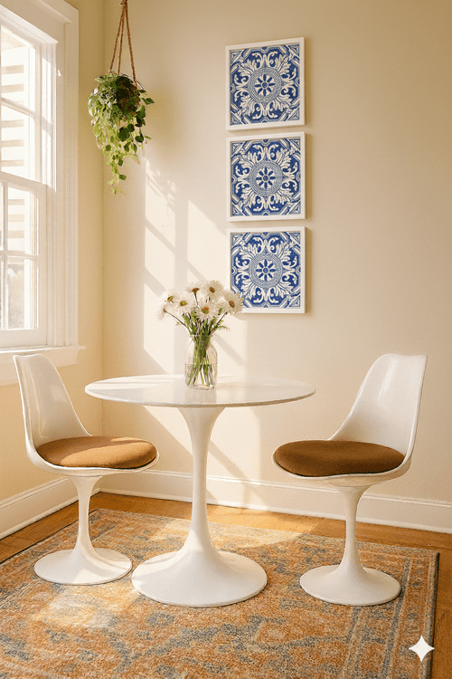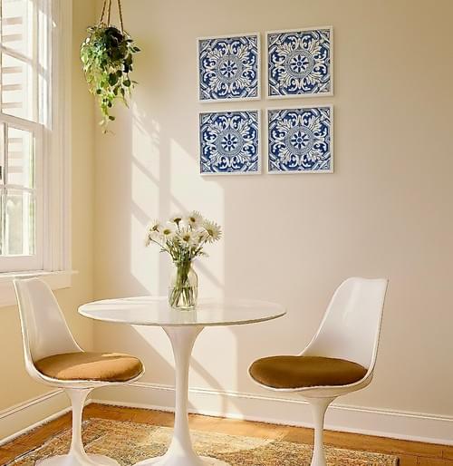 - 4 azulejos (14 x14cm) hand painted in Portugal by artisans using traditional dyes and an age old glaze recipe.