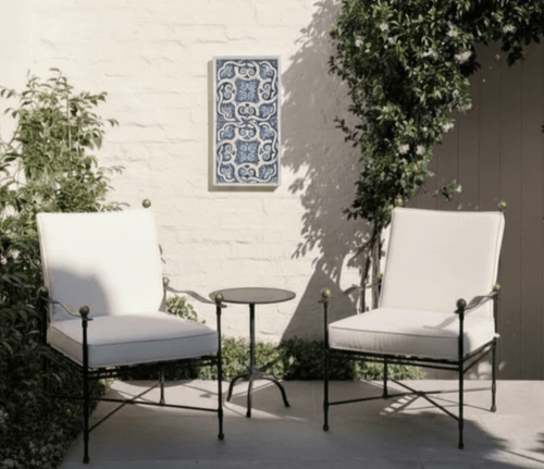 - Framed with teak wood making it suitable for outdoors and indoors.